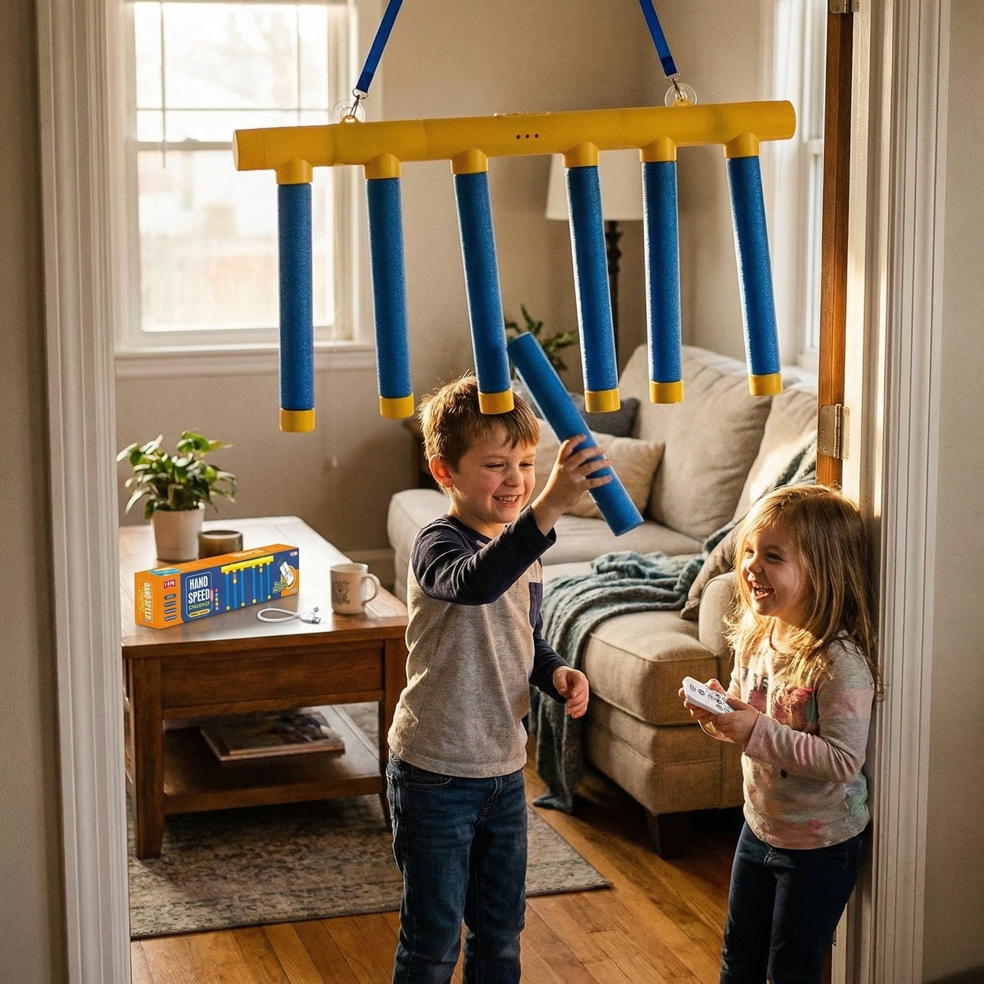 This reaction stick game turns movement into play. Children focus, react and grab the falling sticks as quickly as they can. Every round is different, unpredictable and exciting.
