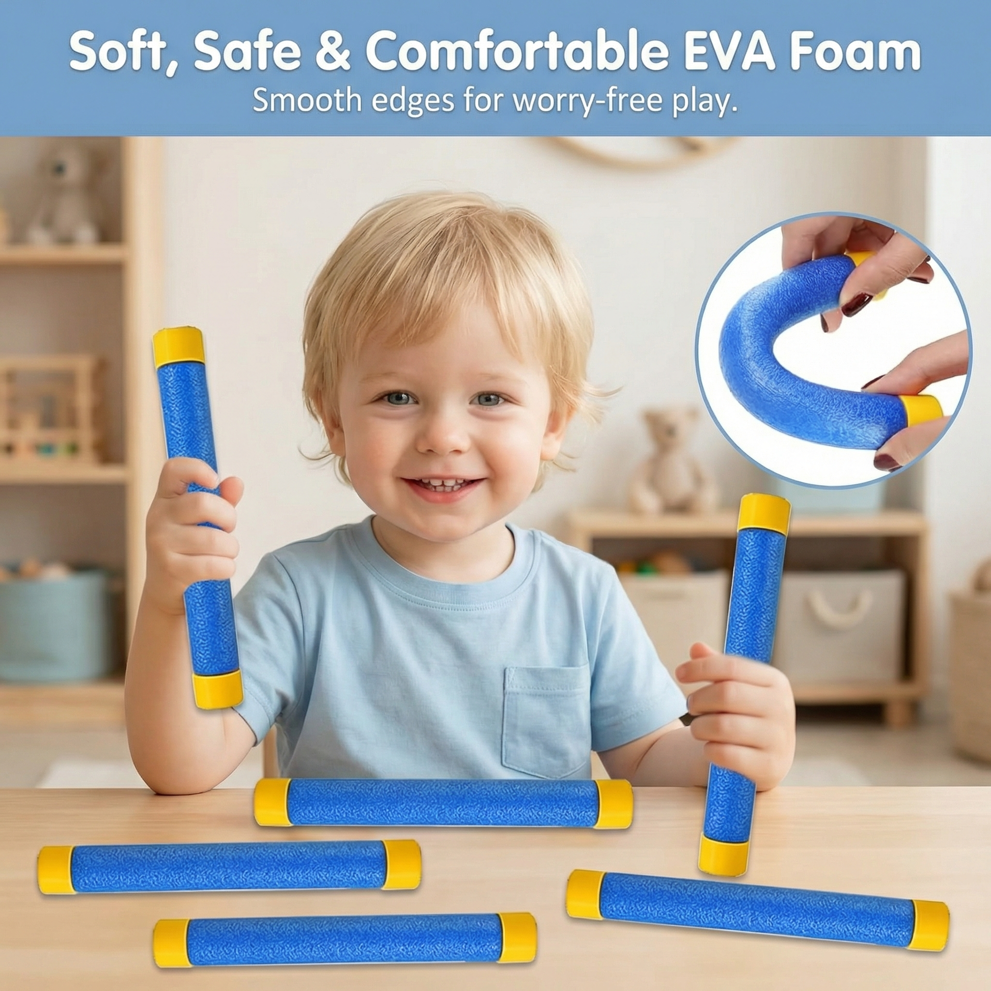 The sticks are lightweight and designed for children to catch safely.